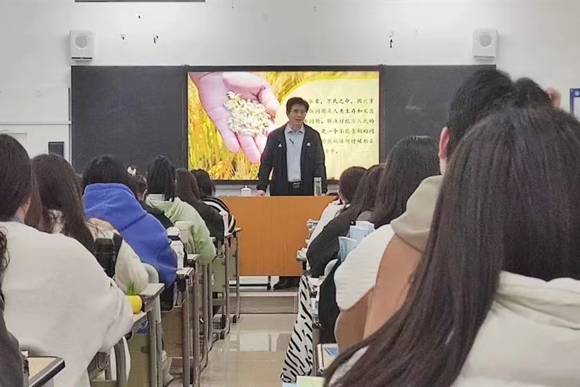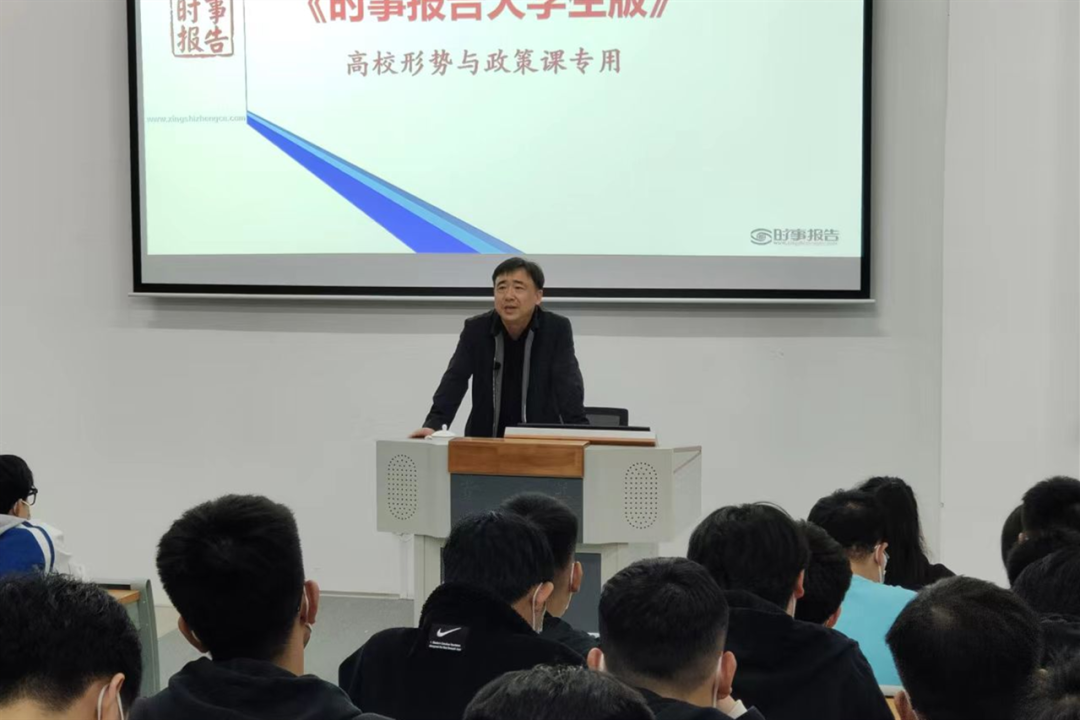 ▲黨委委員、工會(huì)主席路毅為學(xué)生講授形勢(shì)與政策課程