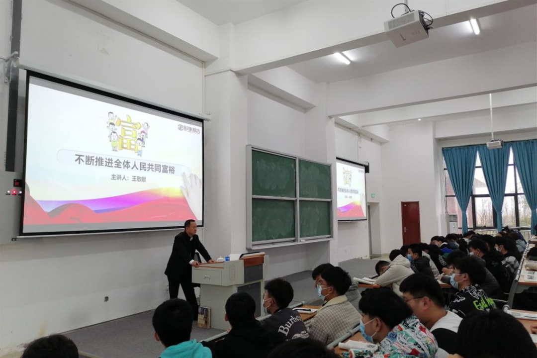 ▲黨委委員、紀(jì)委書記王敬獻(xiàn)為學(xué)生講授形勢(shì)與政策課程