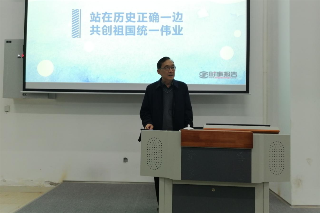 ▲黨委委員王會(huì)民為學(xué)生講授形勢(shì)與政策課程