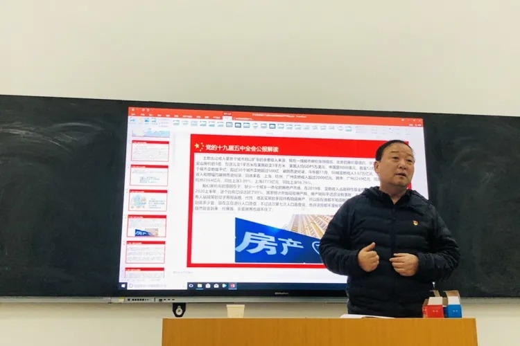 深入學習貫徹黨的十九屆五中全會精神,讓黨的十九屆五中全會精神進課堂、進頭腦,近日財經系黨支部書記田澤平以“貫徹新發(fā)展理念,實現(xiàn)高質量發(fā)展”為主題,以思政課形式,為財經系高職學生詳細講解了黨的十九屆五中全會精神。