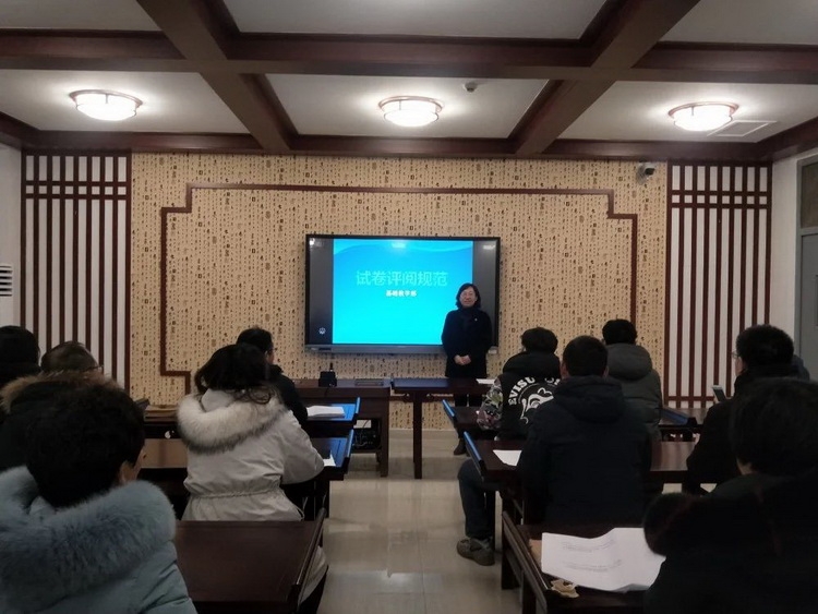 1月5日,基礎教學部在221實訓室召開了試卷評閱培訓會,部主任孔海珍、黨支部書記喬敬虎、副主任藺良付、副主任呂翠芹、相關教研室負責人及閱卷人員參會。