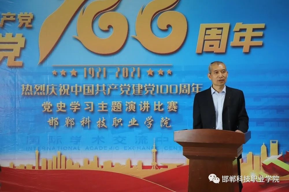 黨委專職副書記霍自祥在講話中首先對所有參賽選手表示敬意,并祝賀獲獎選手。他指出,此次演講是對黨史學習教育的一次檢驗,今后,要廣泛聯(lián)系學生、密切聯(lián)系群眾,豐富活動內容與形式,走出校園、走出教室,將學習、工作與黨史學習教育結合起來,加強黨史學習教育對實際工作的指導作用。各支部要以此次演講為契機,將黨史學習教育持續(xù)引向深入,以飽滿的精神和熱情迎接黨的百歲華誕。
