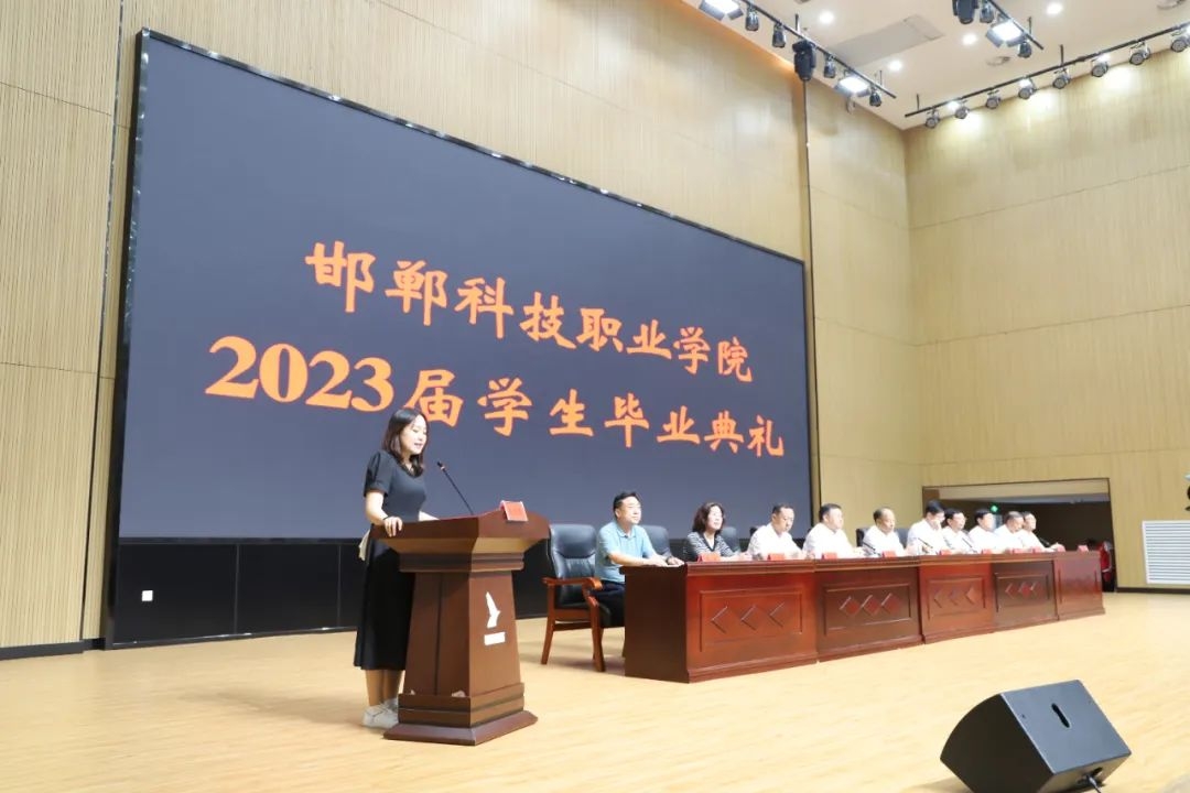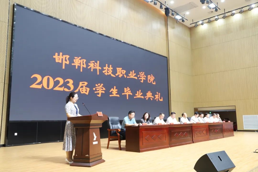 邯鄲科技職業(yè)學(xué)院黨委專職副書記霍自祥宣讀《邯鄲科技職業(yè)學(xué)院關(guān)于準(zhǔn)予2023屆1035名專科生畢業(yè)的決定》。