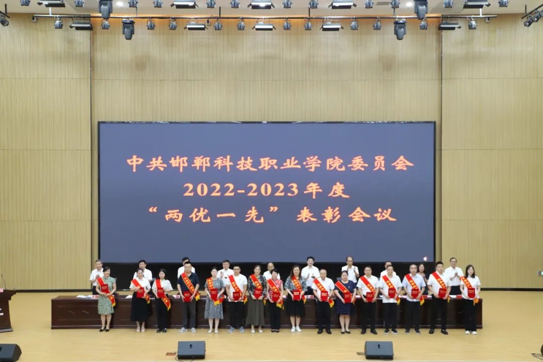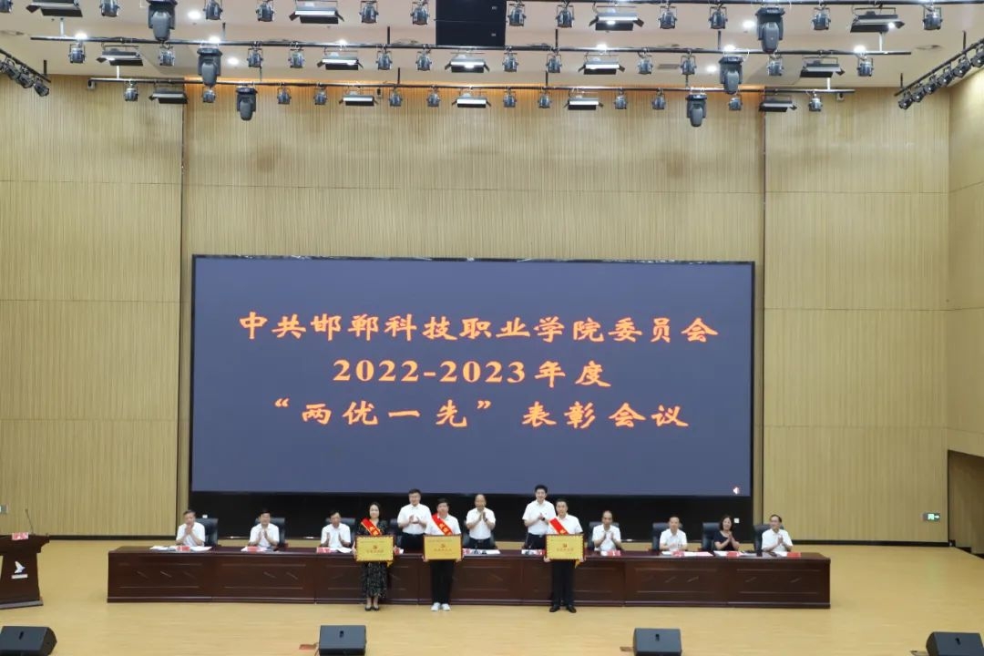 6月29日下午,邯鄲科技職業(yè)學(xué)院在邯鄲職教城國際學(xué)術(shù)交流中心二樓報(bào)告廳召開2022-2023年度優(yōu)秀共產(chǎn)黨員、優(yōu)秀黨務(wù)工作者和先進(jìn)黨支部表彰會(huì)議。學(xué)院黨委書記楊萬春出席并講話,黨委副書記、院長李鵬麗主持,黨委領(lǐng)導(dǎo)班子成員出席。