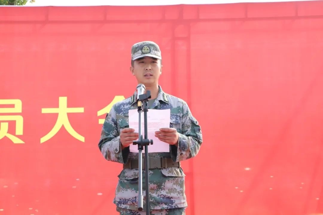 ▲冀南新區(qū)人民武裝部教官代表孟亞龍發(fā)言
