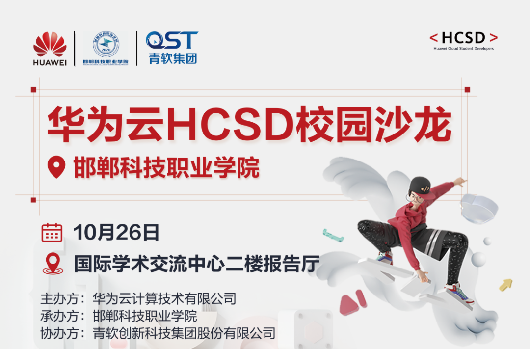 為了加強(qiáng)高校開發(fā)者的職業(yè)素養(yǎng)、專業(yè)技能和實(shí)踐操作能力,培養(yǎng)企業(yè)需求人才,華為云推出【HCSD校園沙龍】活動(dòng),10月26日,華為專家將走進(jìn)邯鄲科技職業(yè)學(xué)院,宣講行業(yè)技術(shù)、模擬企業(yè)實(shí)踐場(chǎng)景,讓同學(xué)們不出校園就能了解行業(yè)實(shí)時(shí)動(dòng)態(tài)、體驗(yàn)時(shí)下熱門技術(shù)能力。