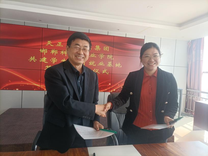 任利民和程琳共同簽署合作協(xié)議,并為實習(xí)就業(yè)基地揭牌。根據(jù)協(xié)議,邯鄲科技職業(yè)學(xué)院和河北天正新能源科技股份有限公司將在人才培養(yǎng)、實踐教學(xué)、實習(xí)就業(yè)等方面開展廣泛合作,共同培養(yǎng)高素質(zhì)技能人才。