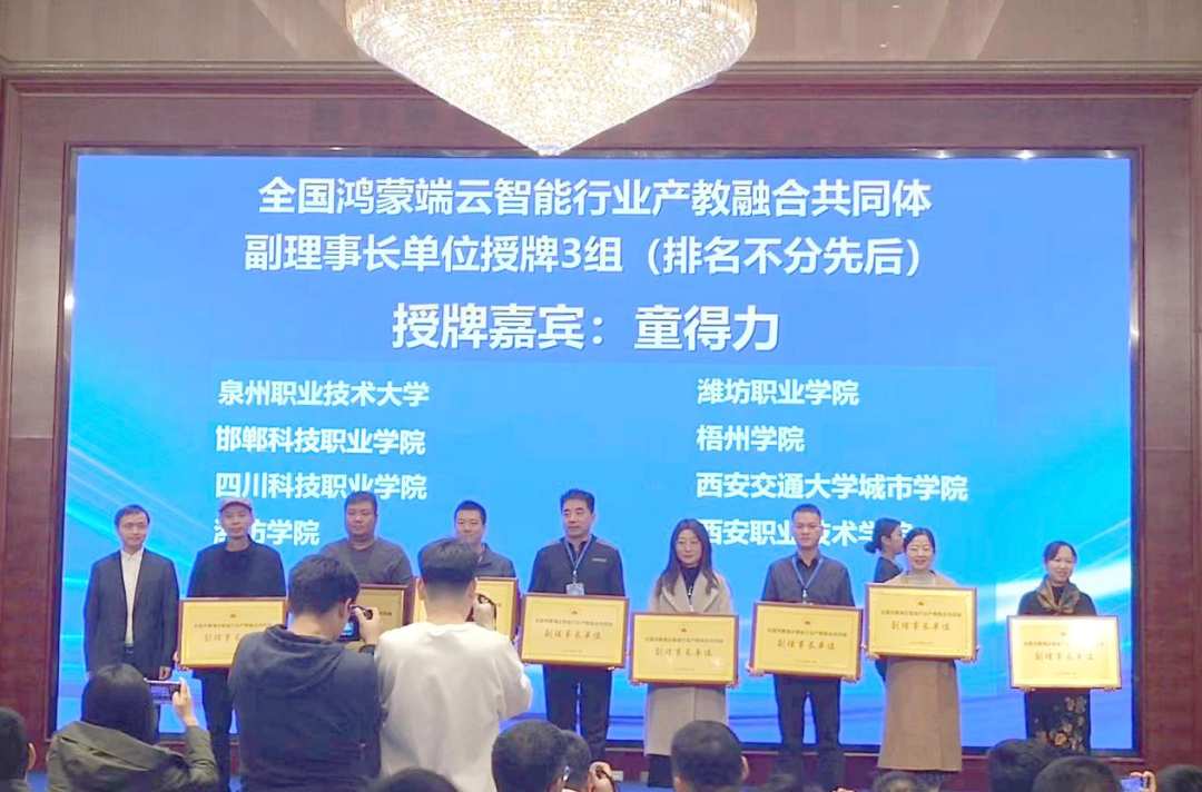 11月11日上午,學(xué)院參加濰坊舉行的全國(guó)鴻蒙端云智能行業(yè)產(chǎn)教融合共同體成立大會(huì),并被推舉為副理事長(zhǎng)單位。全國(guó)鴻蒙端云智能行業(yè)產(chǎn)教融合共同體由工業(yè)和信息化部教育與考試中心指導(dǎo),華為云計(jì)算技術(shù)有限公司、貴州大學(xué)、山東科技職業(yè)學(xué)院共同牽頭,聯(lián)合包括學(xué)院在內(nèi)的共250余家行業(yè)龍頭企業(yè)、普通高校、職業(yè)院校、科研機(jī)構(gòu)、行業(yè)協(xié)會(huì)和上下游企業(yè),本著“共商、共建、共育、共享、共贏”原則共同發(fā)起建設(shè)。共同體成立旨在深化產(chǎn)教融合、校企合作,推動(dòng)職業(yè)教育高質(zhì)量發(fā)展,增強(qiáng)產(chǎn)業(yè)核心競(jìng)爭(zhēng)力,促進(jìn)教育鏈、人才鏈、產(chǎn)業(yè)鏈、創(chuàng)新鏈有機(jī)銜接。據(jù)悉,共同體下一步將持續(xù)深化產(chǎn)教融合、科教融匯,堅(jiān)持以教促產(chǎn)、以產(chǎn)助教,以鴻蒙技術(shù)為核心,結(jié)合云計(jì)算和人工智能等先進(jìn)技術(shù),合作開發(fā)“鴻蒙+云+智能”產(chǎn)教融合教學(xué)資源和人才培養(yǎng)方案,賦能共同體內(nèi)高校、企業(yè),協(xié)同進(jìn)行技術(shù)攻關(guān),驅(qū)動(dòng)共同體產(chǎn)業(yè)鏈升級(jí)。下午,參觀了山東省智能制造公共實(shí)訓(xùn)基地。