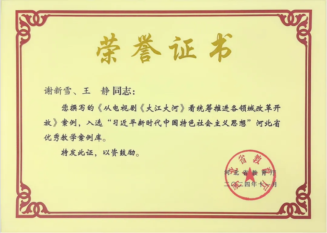 邯鄲科技職業(yè)學(xué)院馬克思主義學(xué)院六項作品成功入選“習(xí)近平新時代中國特色社會主義思想”河北省精品視頻課程庫、“習(xí)近平新時代中國特色社會主義思想”河北省優(yōu)秀教學(xué)案例庫及河北省思政課實踐教學(xué)精品課程庫!