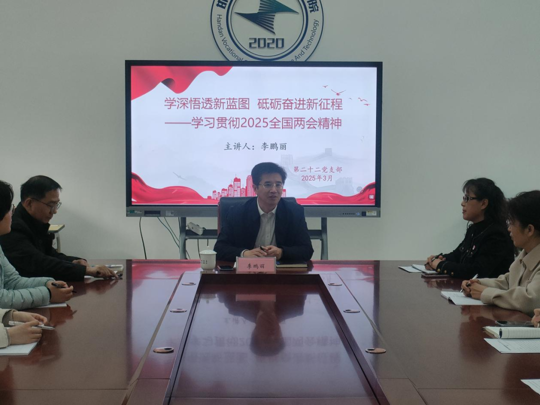 邯鄲科技職業(yè)學院黨委副書記、院長李鵬麗走進第二十二黨支部,為全體思政課黨員教師上了一堂專題黨課。這場以“學深悟透新藍圖 砥礪奮進新征程” 為專題的黨課內(nèi)容豐富、意義深遠,緊密結(jié)合實際為學院思政教育工作指明了方向。