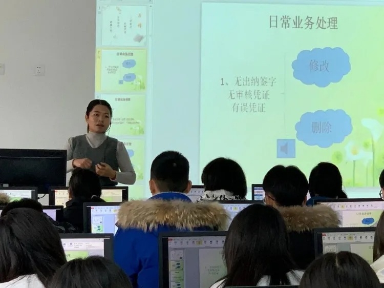 12月3日,申曉靜老師在107教室講授《企業(yè)會(huì)計(jì)》。申老師緊扣“短期借款”主題,針對(duì)學(xué)情,展開(kāi)師生互動(dòng),節(jié)奏明快,風(fēng)格流暢,為示范課觀摩活動(dòng)開(kāi)了個(gè)好頭。12月8日上午,范利霞老師在404教室講授《財(cái)務(wù)會(huì)計(jì)》。同樣是“短期借款”的講授,不一樣的教師展現(xiàn)出不同的課堂魅力。范老師利用故事和身邊事例進(jìn)行新課導(dǎo)入,配以課堂鞏固練習(xí)和提高練習(xí),條理清晰,逐步滲透。12月8日下午,趙園園老師在實(shí)訓(xùn)樓338機(jī)房講授《會(huì)計(jì)實(shí)訓(xùn)》。趙老師巧妙利用《左傳》“知錯(cuò)就改,善莫大焉”導(dǎo)入新課,依次示范操作了憑證的修改、刪除與審核,啟發(fā)學(xué)生思考,引導(dǎo)學(xué)生學(xué)習(xí)。12月11日,王冀霞老師在205教室講授資產(chǎn)負(fù)債表的編制。王老師在講課過(guò)程中注重細(xì)節(jié),內(nèi)容充實(shí),講練結(jié)合,充分表現(xiàn)出老教師的內(nèi)涵與底蘊(yùn),實(shí)現(xiàn)了這次觀摩活動(dòng)的完美收官。