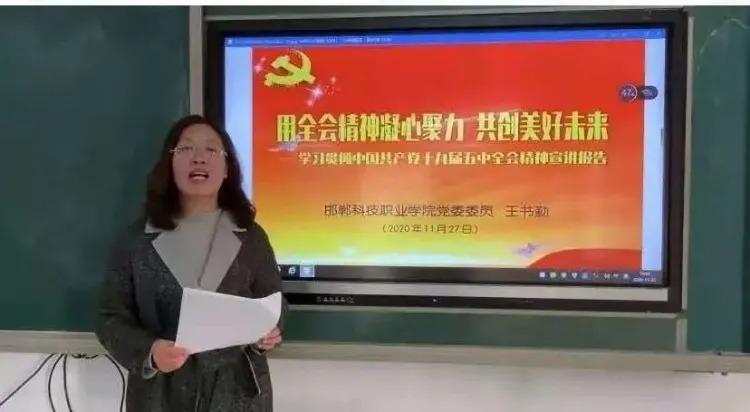 學(xué)院黨委委員王書(shū)勤在學(xué)院中專部第八黨支部作十九屆五中全會(huì)精神宣傳報(bào)告。她從十九屆五中全會(huì)會(huì)議情況、主要成果等方面,對(duì)會(huì)議精神做了全面系統(tǒng)的解讀。她強(qiáng)調(diào):要認(rèn)真貫徹落實(shí)黨的十九屆五中全會(huì)精神,并當(dāng)成當(dāng)前時(shí)期的重要政治任務(wù),切實(shí)把思想和行動(dòng)統(tǒng)一到全會(huì)精神上來(lái)。廣大黨員干部要帶頭學(xué)習(xí)、帶頭宣傳、帶頭落實(shí)。要按照全會(huì)精神謀劃和推進(jìn)教學(xué)工作。要堅(jiān)持以習(xí)近平新時(shí)代中國(guó)特色社會(huì)主義思想為綱領(lǐng),推動(dòng)學(xué)校的各項(xiàng)工作,特別是思想政治工作再上新臺(tái)階。