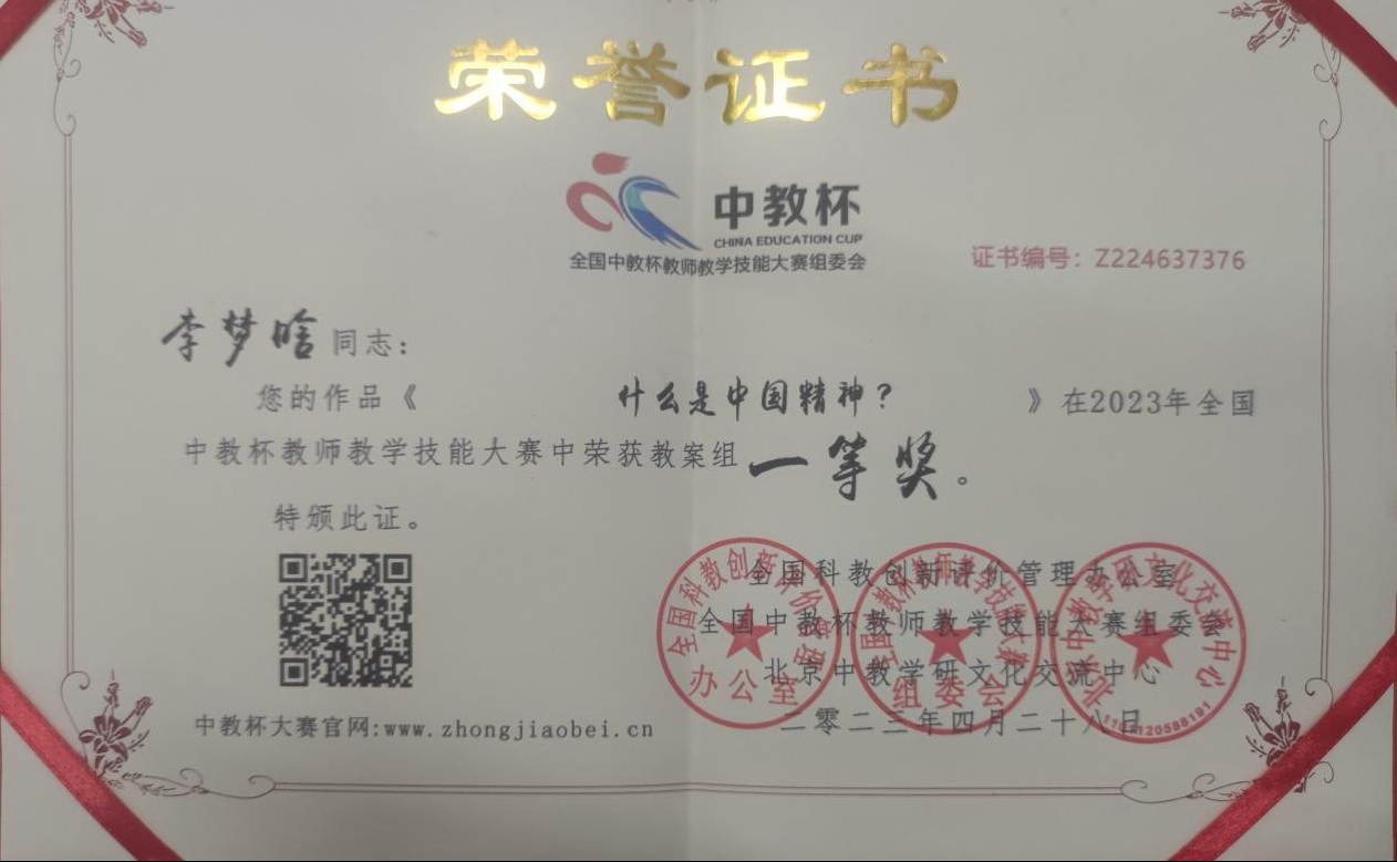 思政課教師李夢涵獲得中教杯教師教學(xué)技能大賽一等獎(jiǎng)