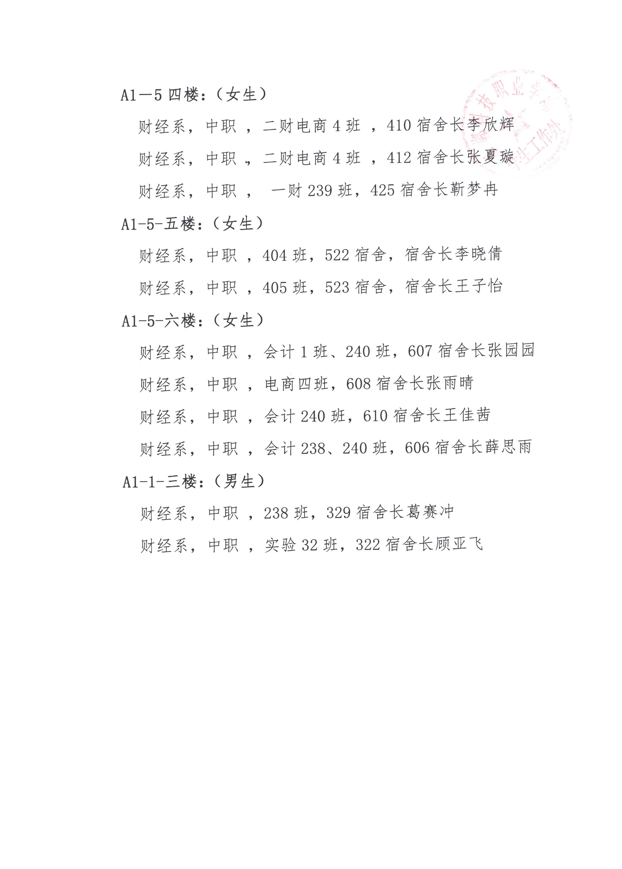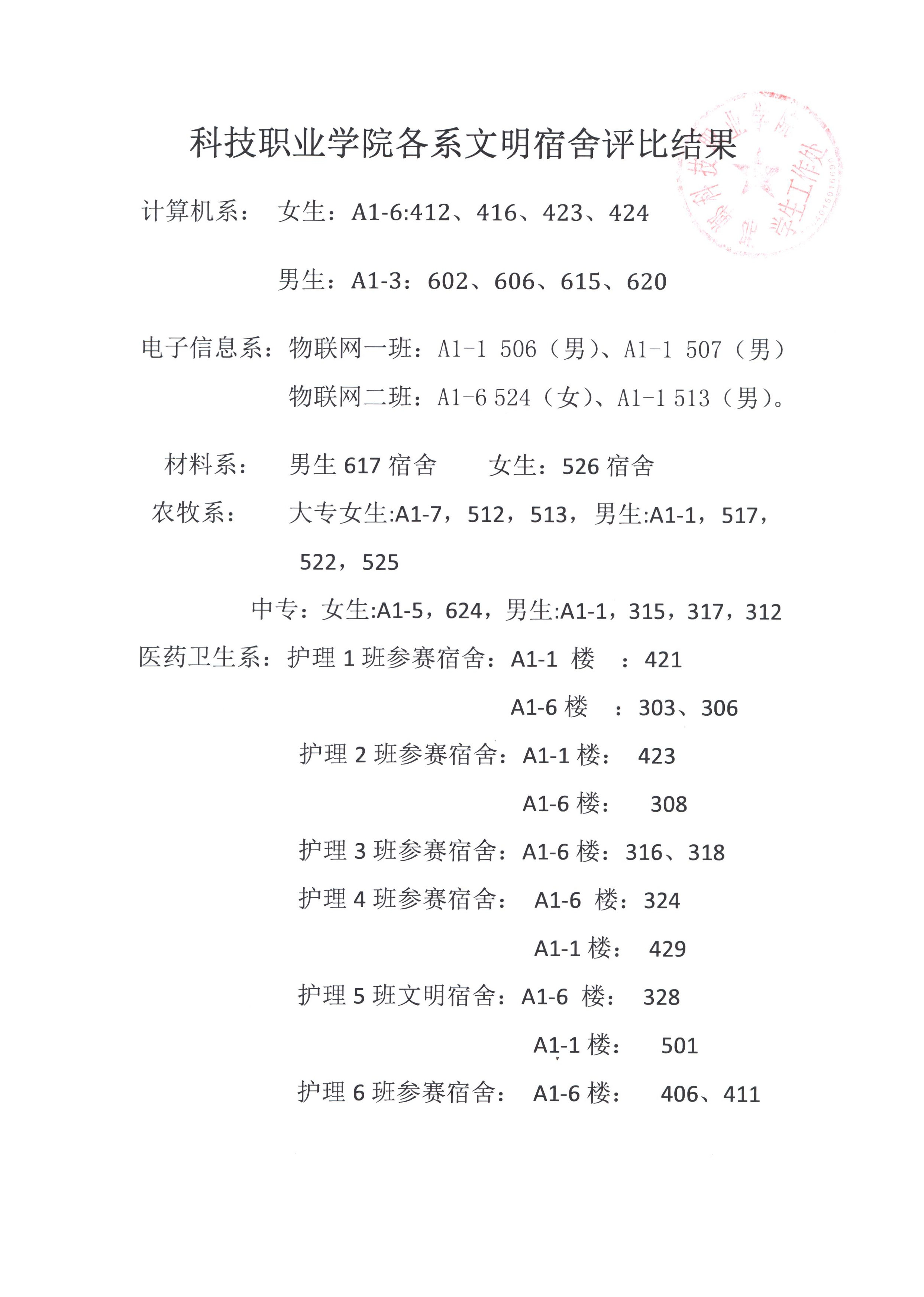 2021年3-6月文明宿舍評比結(jié)果