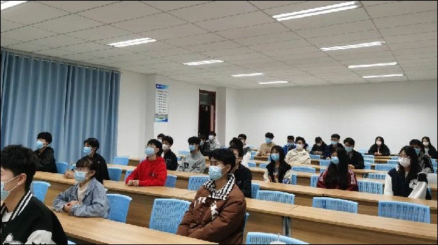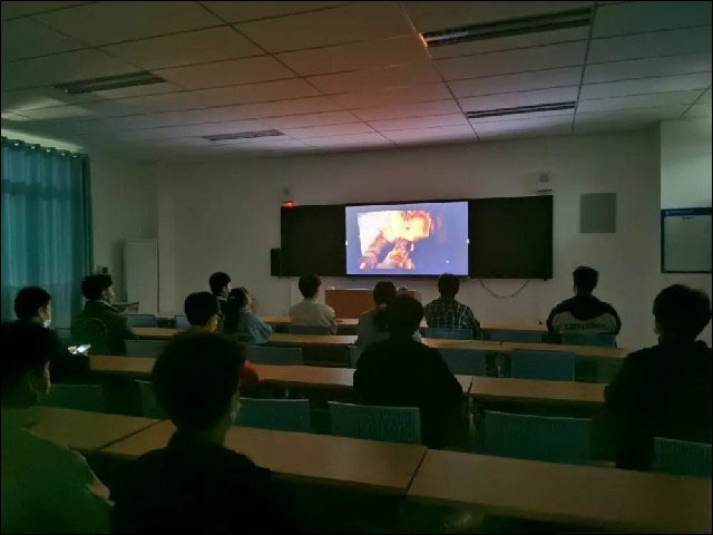 ▲電子信息系組織學(xué)生在教學(xué)樓418室觀看紅色電影《長(zhǎng)津湖》