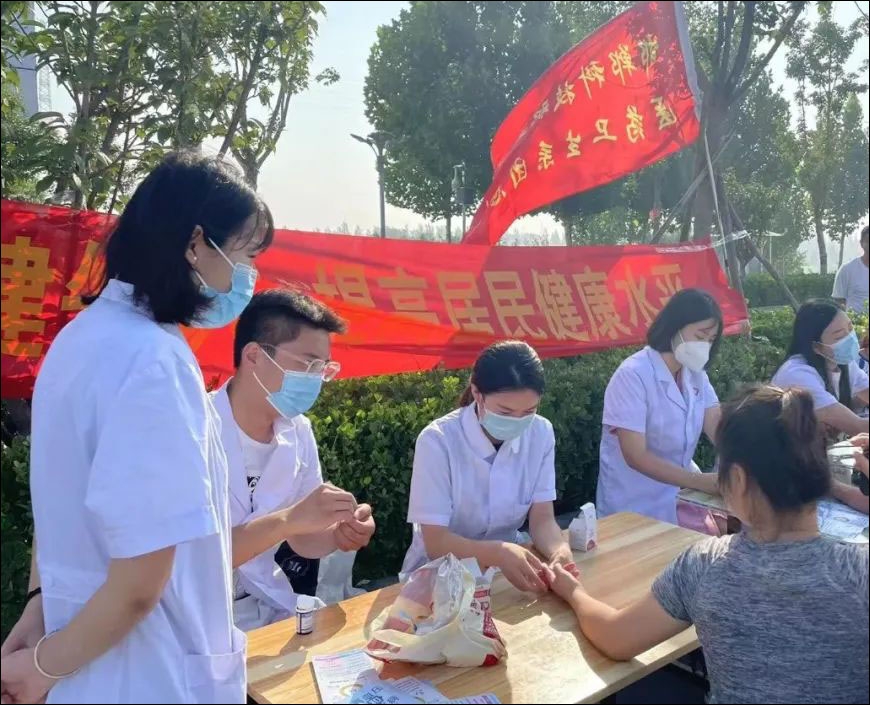 為迎接黨的二十大勝利召開,引導(dǎo)和幫助青年學(xué)生上好與現(xiàn)實(shí)相結(jié)合的“大思政課”,在社會課堂中“受教育、長才干、作貢獻(xiàn)”。7月21日,學(xué)院醫(yī)藥衛(wèi)生系響應(yīng)學(xué)院號召,精心組織“三下鄉(xiāng)”健康愛心小分隊(duì)在邯鄲市永年區(qū)洺湖公園開展暑期社會實(shí)踐活動。