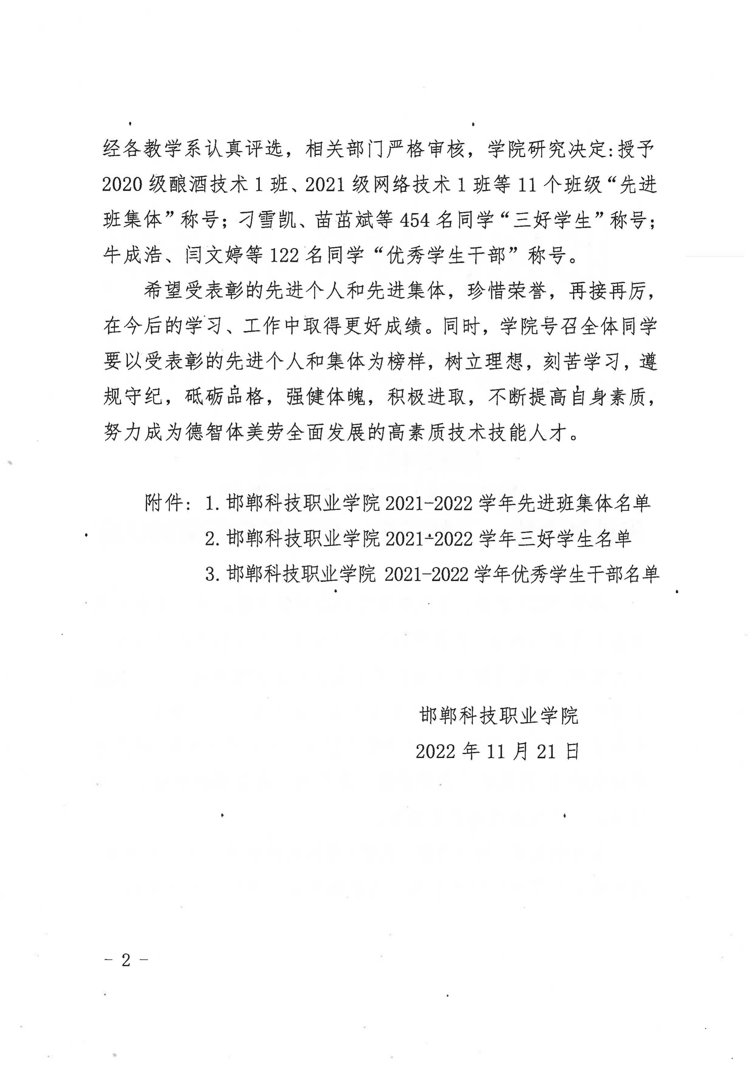 2021-2022先進(jìn)班集體、三好學(xué)生、優(yōu)秀學(xué)生干部名單
