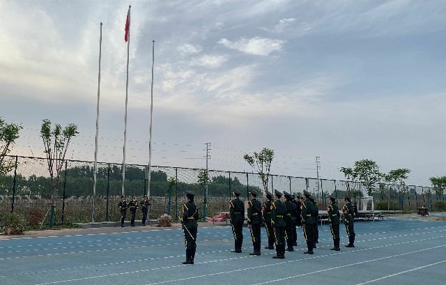 晨光熠熠,伴隨著國(guó)旗隊(duì)鏗鏘的步伐和洪亮的口號(hào),在雄壯莊嚴(yán)的國(guó)歌聲中,五星紅旗在學(xué)院操場(chǎng)冉冉升起。全體師生行注目禮,共唱國(guó)歌。