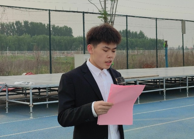 學(xué)生代表尹士朋同學(xué)在國(guó)旗下發(fā)言,他倡議新時(shí)代大學(xué)生要以青春之名,揚(yáng)五四風(fēng)采,要立鴻鵠之志,不負(fù)時(shí)代、不負(fù)韶華。弘揚(yáng)五四精神,成為有理想、敢擔(dān)當(dāng)、能吃苦,肯奮斗的新時(shí)代好青年。