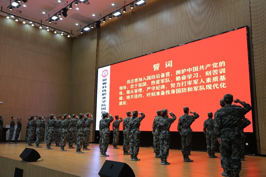 邯鄲科技職業(yè)學(xué)院黨委委員于保國(guó)宣讀"邯鄲科技職業(yè)學(xué)院關(guān)于成立國(guó)防后備營(yíng)的決定”,任命邯鄲科技職業(yè)學(xué)院學(xué)生工作處處長(zhǎng)趙芳為國(guó)防后備營(yíng)營(yíng)長(zhǎng),院團(tuán)委書記張富明為國(guó)防后備營(yíng)指導(dǎo)員。