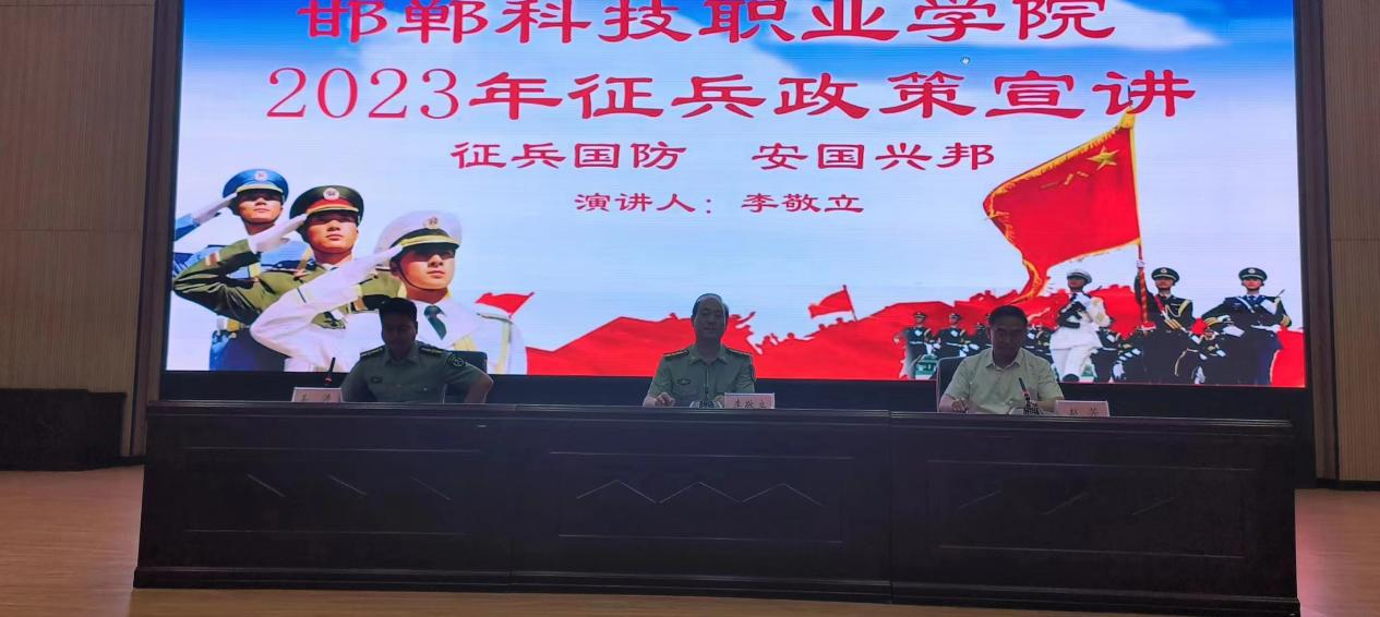 6月14日,我院在國(guó)際交流中心二樓報(bào)告廳舉行征兵宣傳動(dòng)員大會(huì),冀南新區(qū)武裝部部長(zhǎng)李敬立,軍事科姜濤、學(xué)院學(xué)工處處長(zhǎng)趙芳在主席臺(tái)就座,各系部輔導(dǎo)員,各班學(xué)生代表及國(guó)防后備營(yíng)全體人員出席大會(huì)。