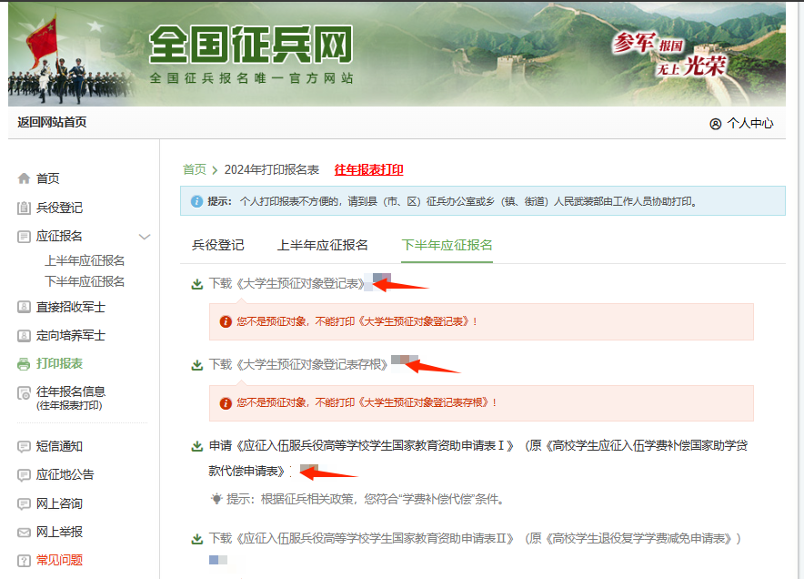 11.報名后,顯示應(yīng)征青年下載打印相關(guān)表格,我需要填寫哪些?