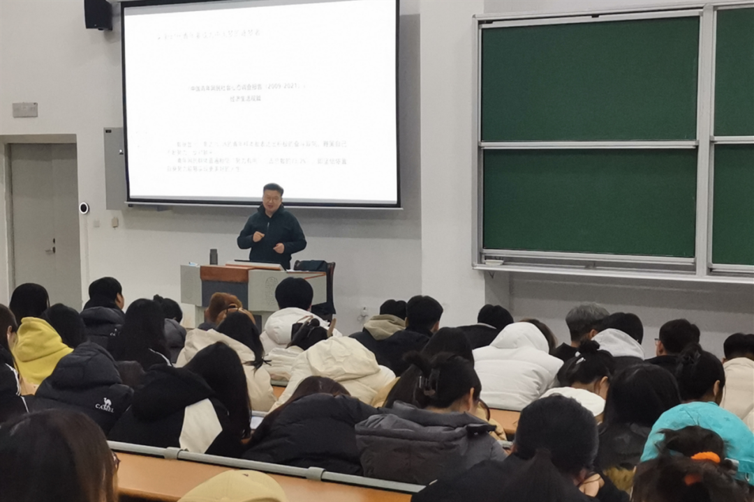▲黨委委員、工會(huì)主席路毅為學(xué)生講授形勢(shì)與政策課程