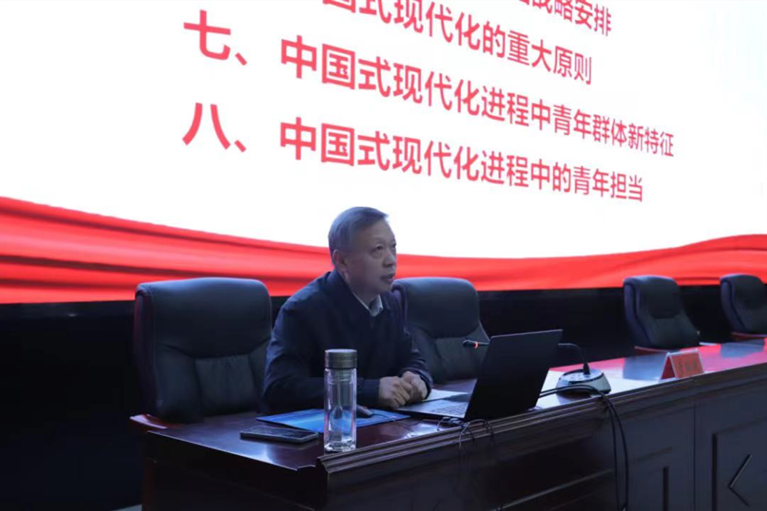 ▲黨委專職副書記霍自祥為學(xué)生講授形勢(shì)與政策課程