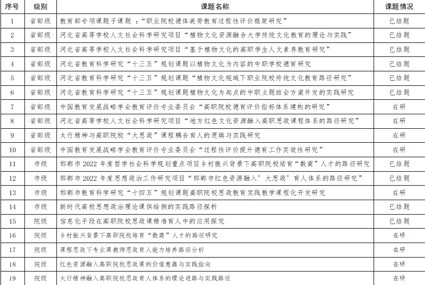 ▲邯鄲科技職業(yè)學(xué)院思政課科研成果(部分)