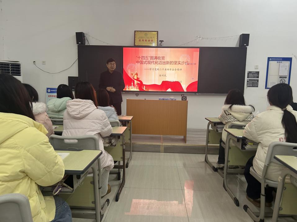 12月23日,學(xué)院黨委委員、副院長任利民走進(jìn)財(cái)經(jīng)系,為青年學(xué)子帶來一堂《“十四五”圓滿收官 中國式現(xiàn)代化邁出新的堅(jiān)實(shí)步伐——學(xué)習(xí)黨的二十屆四中全會(huì)精神》的思政課。