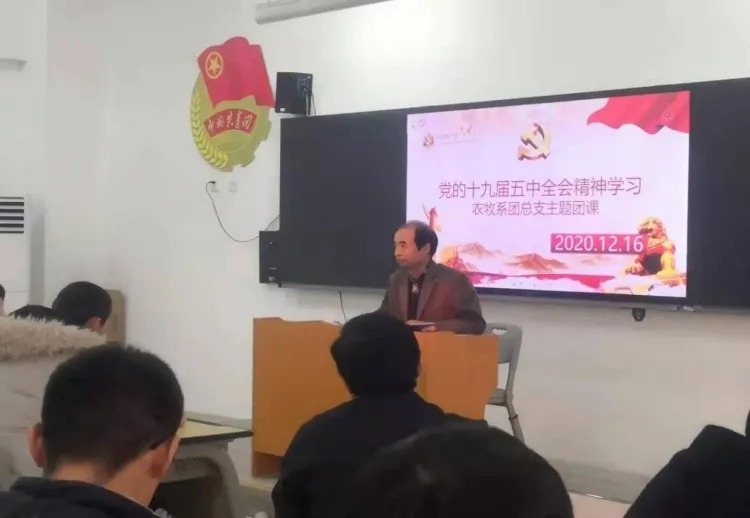 12月16日下午,農(nóng)牧系組織學(xué)生學(xué)習(xí)黨的十九屆五中全會(huì)精神主題團(tuán)課。特邀學(xué)院黨委委員、副院長(zhǎng)王振鵬主講,系黨支部書(shū)記王領(lǐng)軍參加會(huì)議。