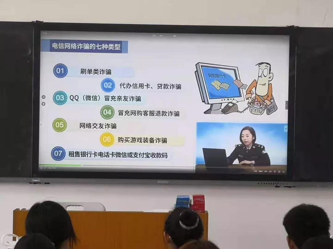 視頻中,警官重點從五個方面講述了防范電信詐騙,并介紹了電信網(wǎng)絡(luò)詐騙的七種類型,學(xué)生們受益匪淺。