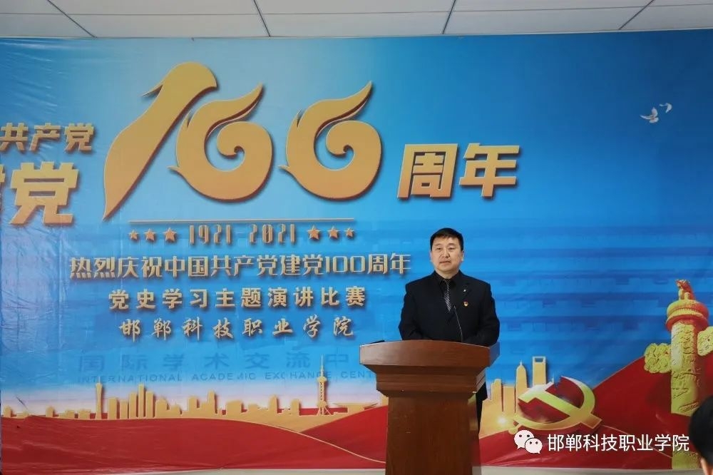 黨委專職副書記霍自祥在講話中首先對所有參賽選手表示敬意,并祝賀獲獎選手。他指出,此次演講是對黨史學習教育的一次檢驗,今后,要廣泛聯(lián)系學生、密切聯(lián)系群眾,豐富活動內容與形式,走出校園、走出教室,將學習、工作與黨史學習教育結合起來,加強黨史學習教育對實際工作的指導作用。各支部要以此次演講為契機,將黨史學習教育持續(xù)引向深入,以飽滿的精神和熱情迎接黨的百歲華誕。