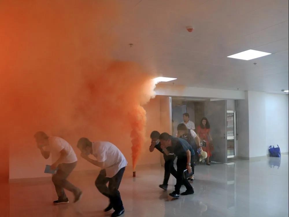 在逃生演練中,全體人員迅速有序地撤離至安全地點(diǎn)