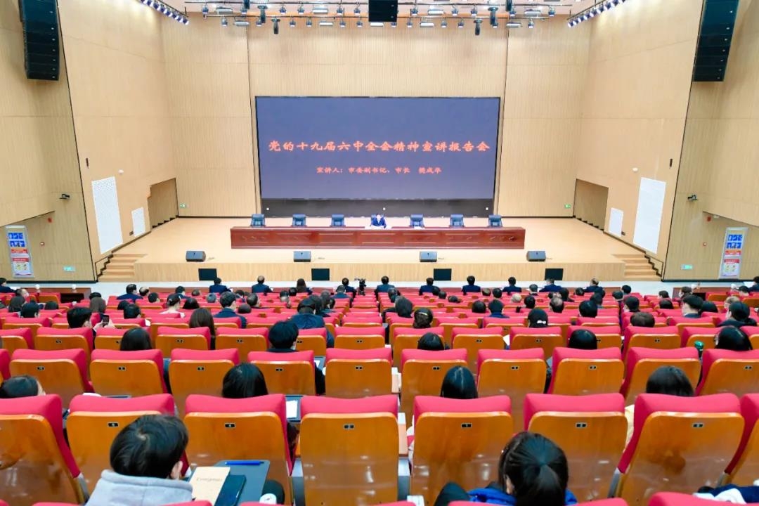 學(xué)術(shù)交流中心報(bào)告廳內(nèi),200余名師生代表聚集一堂。樊成華圍繞黨的十九屆六中全會(huì)的重大意義、重大成果、重大部署,提出的戰(zhàn)略思想和創(chuàng)新理念等方面,與大家交流共勉。