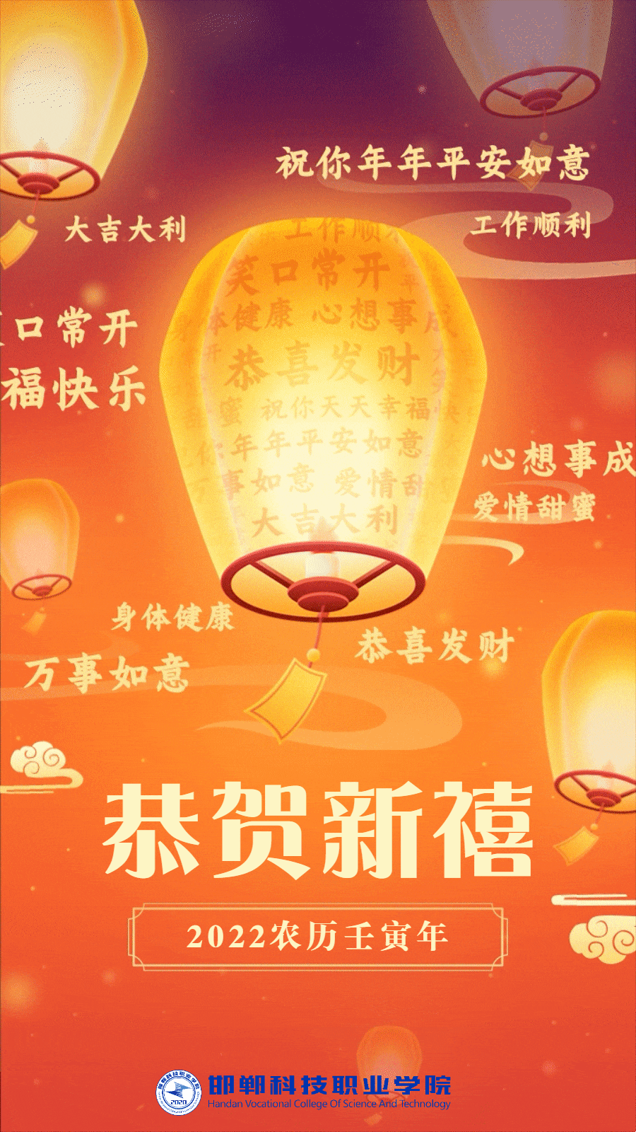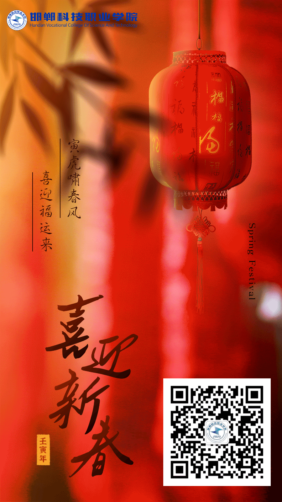 歲末甫至,萬(wàn)象更新。新年的鐘聲即將敲響,我們告別過(guò)去,向嶄新的壬寅虎年邁進(jìn)。值此辭舊迎新的美好時(shí)刻,中共邯鄲科技職業(yè)學(xué)院委員會(huì)向在教學(xué)、科研、管理服務(wù)崗位上孜孜不倦、默默奉獻(xiàn)的廣大教職員工,向意氣風(fēng)發(fā)、力學(xué)篤行的莘莘學(xué)子,向識(shí)卓業(yè)精、續(xù)寫(xiě)光輝的離退休老同志,向關(guān)心和支持學(xué)院事業(yè)發(fā)展的各級(jí)領(lǐng)導(dǎo)、各界人士,致以最誠(chéng)摯的問(wèn)候和最衷心的祝福!祝福大家身體健康、工作順利、闔家幸福、虎年吉祥!祝愿?jìng)ゴ笞鎳?guó)山河錦繡、風(fēng)調(diào)雨順、國(guó)泰民安、繁榮富強(qiáng)!
