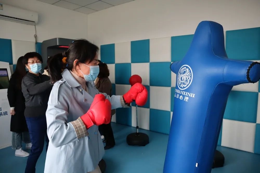 講座前,女教師們?cè)谛睦斫】抵行膶I(yè)輔導(dǎo)人員的帶領(lǐng)下體驗(yàn)了個(gè)體心理咨詢、團(tuán)體心理輔導(dǎo)、放松診療、情緒宣泄、沙盤和心理測(cè)量等專業(yè)設(shè)備。在科學(xué)數(shù)據(jù)的支撐下,指導(dǎo)大家正確對(duì)待情緒和生活事件,主動(dòng)調(diào)節(jié)情緒,接納自己,積極解決自己的情緒問題。