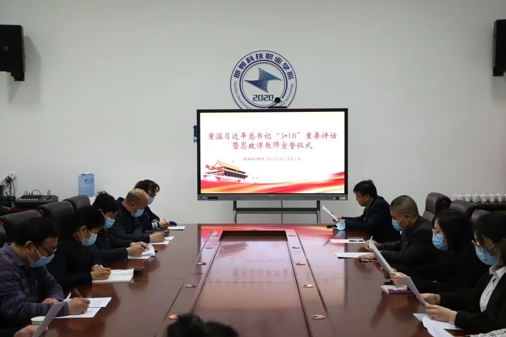 為進(jìn)一步增強(qiáng)思想政治理論課教師的責(zé)任感與使命感,不負(fù)習(xí)近平總書(shū)記對(duì)思政課教師的殷殷囑托,貫徹落實(shí)立德樹(shù)人根本任務(wù),3月20日上午,馬克思主義教學(xué)部在111會(huì)議室舉行思政課教師宣誓儀式。《思想政治理論課教師誓詞》由學(xué)院黨委專職副書(shū)記、馬克思主義教學(xué)部主管領(lǐng)導(dǎo)霍自祥領(lǐng)誓。 《誓詞》簡(jiǎn)短有力,結(jié)合習(xí)近平總書(shū)記對(duì)新時(shí)代思政課教師的要求,以“不忘初心,牢記使命”為主線,號(hào)召全體思政課教師以“六個(gè)要”為行為準(zhǔn)則,按照“八個(gè)統(tǒng)一”要求講好思政課,為培養(yǎng)德智體美勞全面發(fā)展的社會(huì)主義建設(shè)者和接班人而努力奮斗。宣誓現(xiàn)場(chǎng)莊重嚴(yán)肅,在霍自祥的帶領(lǐng)下,全體思政課教師高舉右手鄭重宣誓。 宣誓前,霍自祥帶領(lǐng)教學(xué)部全體教師重溫習(xí)近平總書(shū)記在學(xué)校思想政治理論課教師座談會(huì)上的重要講話,強(qiáng)調(diào)辦好高校思政課關(guān)鍵在教師,馬克思主義教學(xué)部身兼鑄魂育人重?fù)?dān),需抓好青少年階段這一“拔節(jié)孕穗期”,對(duì)在校學(xué)生做好精心引導(dǎo)與栽培,理直氣壯開(kāi)好思政課,引導(dǎo)學(xué)生堅(jiān)定“四個(gè)自信”,在學(xué)生群體中厚植愛(ài)國(guó)主義情懷,使其能夠自覺(jué)將愛(ài)國(guó)情、強(qiáng)國(guó)志、報(bào)國(guó)行自覺(jué)融入堅(jiān)持和發(fā)展中國(guó)特色社會(huì)主義事業(yè)的奮斗之中。 全體思政課教師反響熱烈,通過(guò)宣誓儀式,更加堅(jiān)定了為國(guó)育才、為黨育人的理想信念,紛紛表示下一步要對(duì)標(biāo)誓詞,在自身素質(zhì)方面做到“六個(gè)要”,在工作方面做到“八個(gè)統(tǒng)一”,不斷推進(jìn)思政教育教學(xué)改革,努力將思想政治理論課程建設(shè)成為有深度、有溫度、有力量、受歡迎的優(yōu)質(zhì)課程,使思政課這一育人主渠道作用得到更好發(fā)揮。