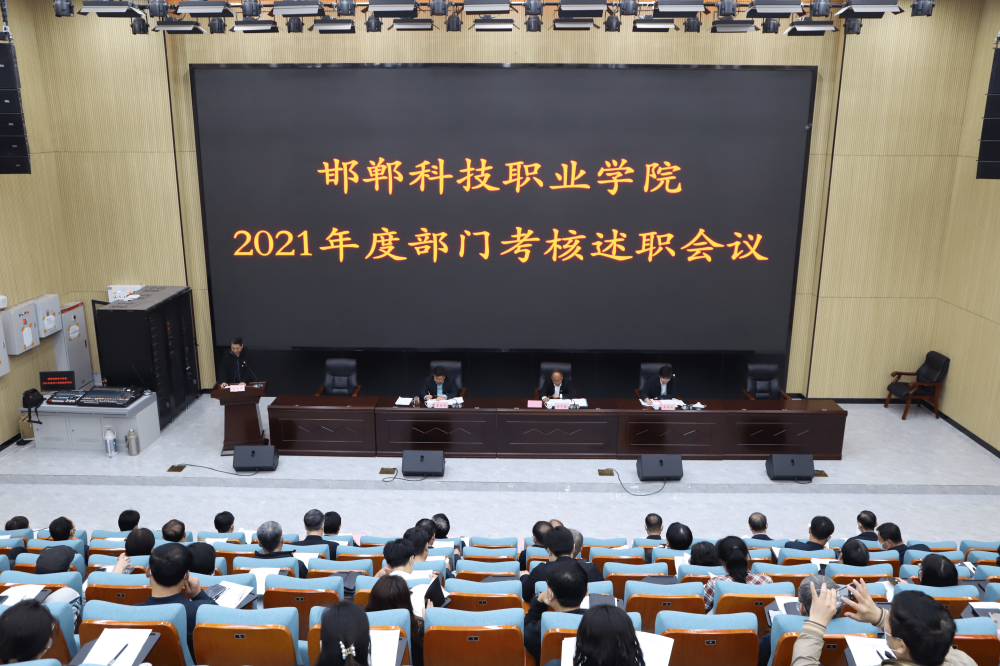 4月25日上午,學(xué)院黨委在職教城國際學(xué)術(shù)交流中心一樓報告廳召開2021年度部門考核述職會議。黨委書記楊萬春出席并講話,黨委副書記、院長李鵬麗主持述職會,學(xué)院黨委班子成員出席。會上全院26個部門主要負(fù)責(zé)人依次作了述職發(fā)言,這是考核工作的第二個環(huán)節(jié)。在4月20日、21日,考核辦公室已對各部門日常管理和教學(xué)科研等方面進(jìn)行評估打分。
