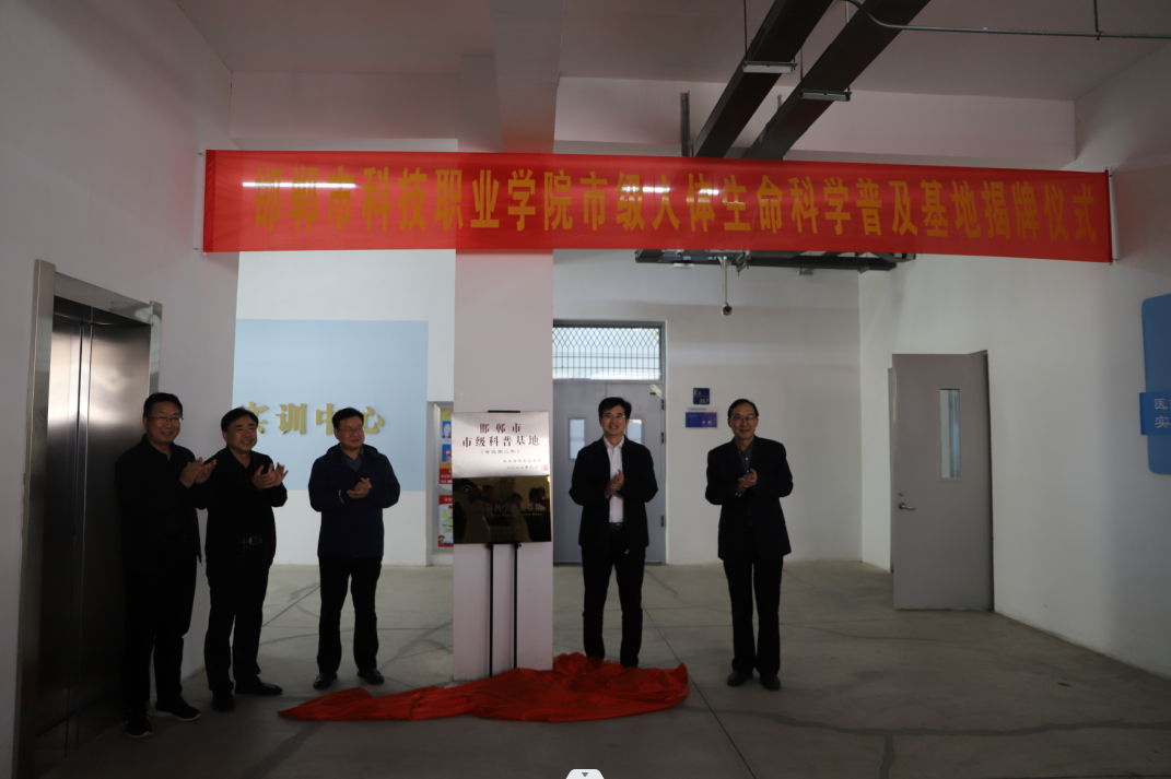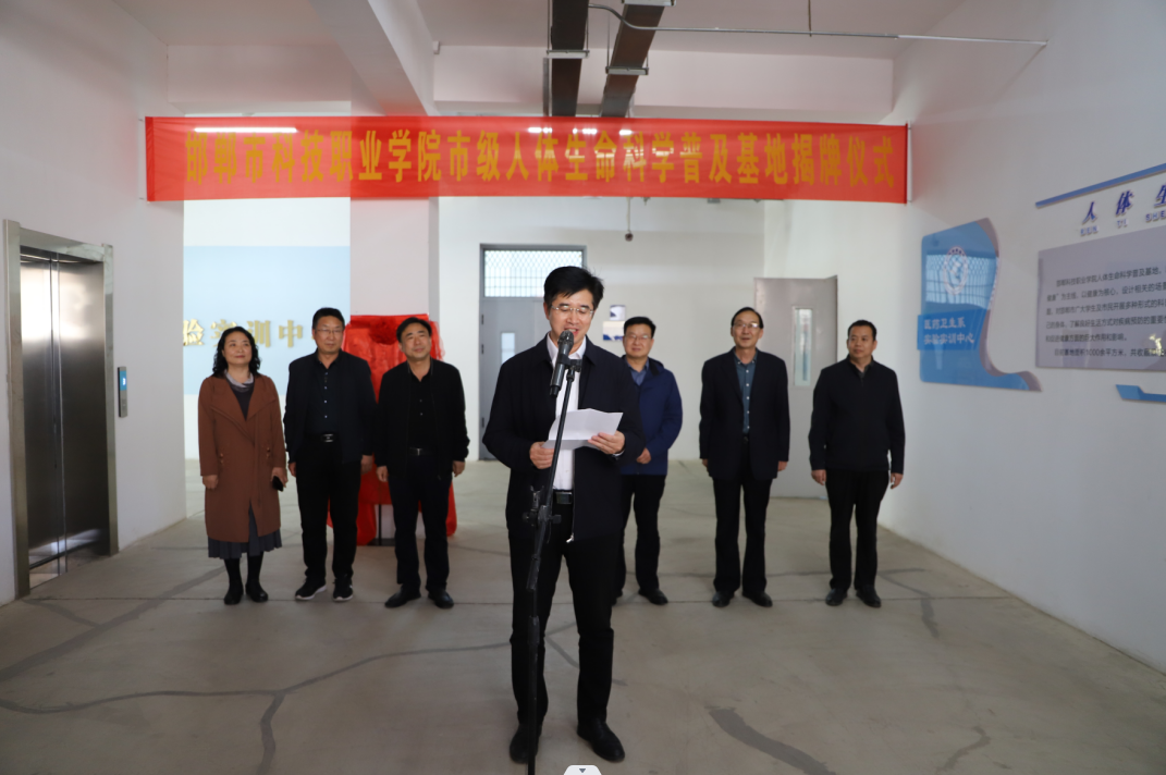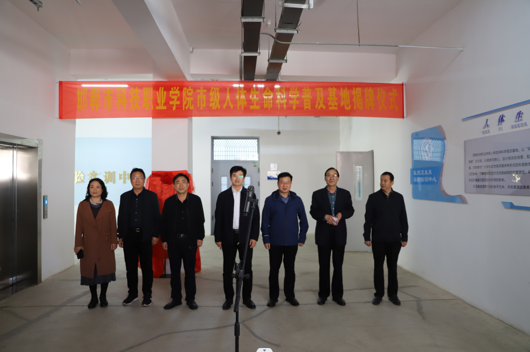 5月8日下午, “邯鄲市人體生命科學(xué)普及基地”揭牌儀式在學(xué)院實(shí)訓(xùn)樓醫(yī)藥衛(wèi)生系實(shí)驗(yàn)實(shí)訓(xùn)中心舉行。學(xué)院院長(zhǎng)李鵬麗出席并致辭,黨委專職副書(shū)記霍自祥,黨委委員、工會(huì)主席路毅出席儀式。學(xué)院黨委委員、醫(yī)藥衛(wèi)生系主任王會(huì)民主持儀式。