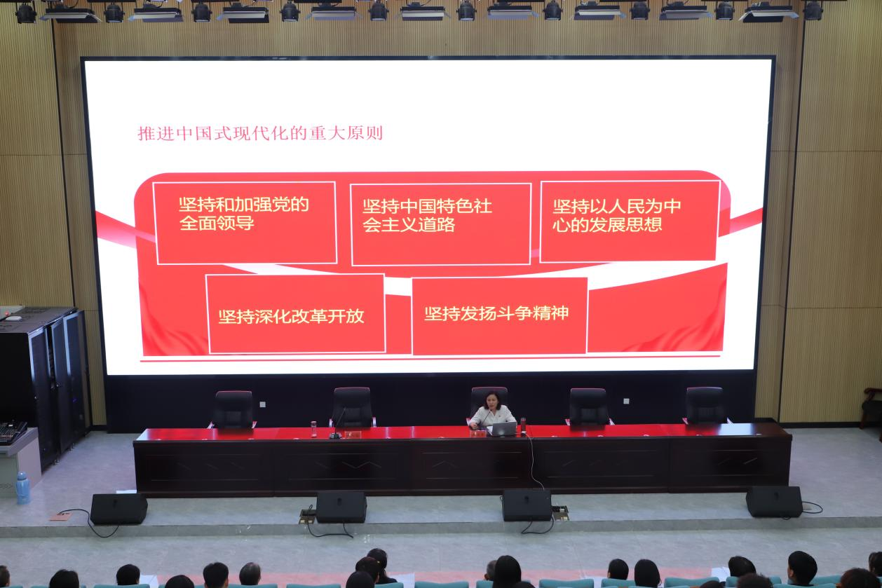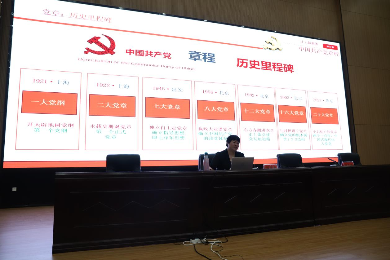 河北省委黨校研究員閆麗丹以“認(rèn)真學(xué)習(xí)黨章 增強(qiáng)黨的創(chuàng)造力、凝聚力、戰(zhàn)斗力”為題,圍繞中國(guó)共產(chǎn)黨百年黨章史、黨章是中國(guó)共產(chǎn)黨的總章程、總規(guī)矩、全面掌握二十大黨章修改的主要內(nèi)容三個(gè)部分,從黨的全國(guó)人民代表大會(huì)發(fā)展歷程、黨章的地位和作用、中國(guó)共產(chǎn)黨章程的歷史沿革做了細(xì)致描述。