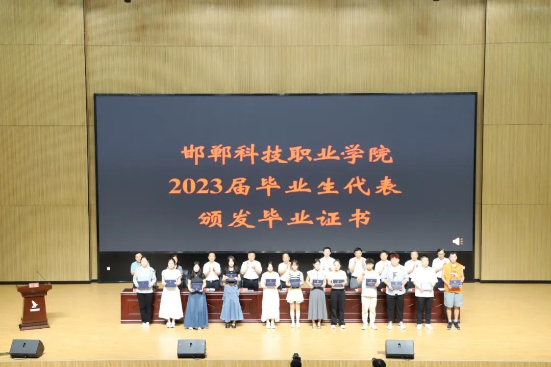 邯鄲科技職業(yè)學(xué)院黨委專職副書記霍自祥宣讀《邯鄲科技職業(yè)學(xué)院關(guān)于準(zhǔn)予2023屆1035名專科生畢業(yè)的決定》。