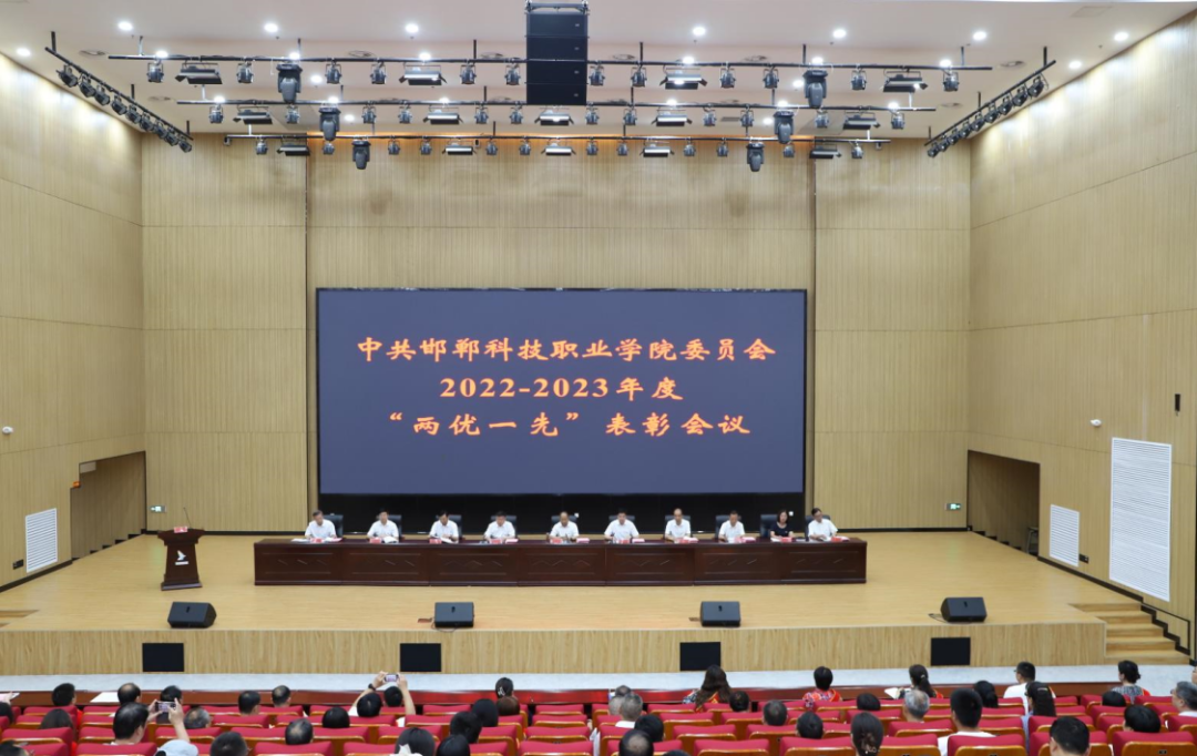 6月29日下午,邯鄲科技職業(yè)學(xué)院在邯鄲職教城國際學(xué)術(shù)交流中心二樓報(bào)告廳召開2022-2023年度優(yōu)秀共產(chǎn)黨員、優(yōu)秀黨務(wù)工作者和先進(jìn)黨支部表彰會(huì)議。學(xué)院黨委書記楊萬春出席并講話,黨委副書記、院長李鵬麗主持,黨委領(lǐng)導(dǎo)班子成員出席。
