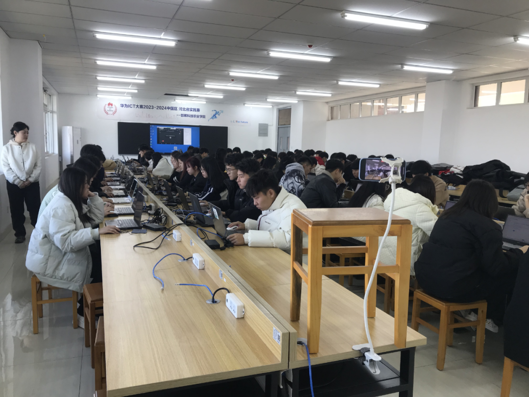 2023年11月18日,華為ICT大賽2023-2024中國區(qū)河北省實(shí)踐賽初賽邯鄲科技職業(yè)學(xué)院站在學(xué)院實(shí)訓(xùn)室406舉行。
