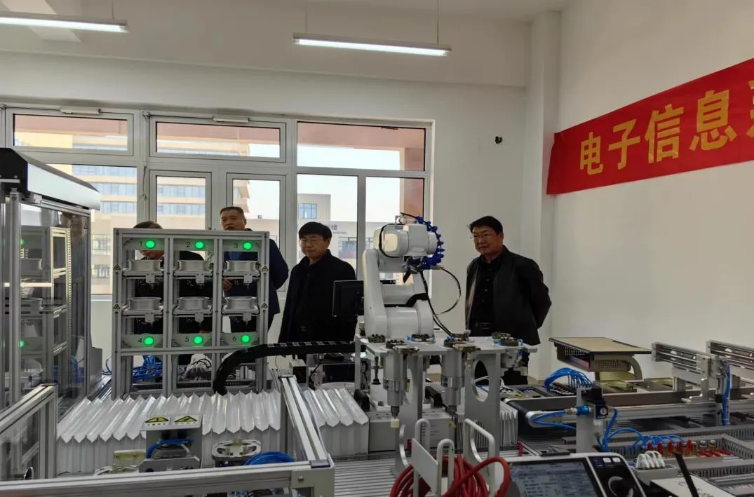 任利民重點(diǎn)調(diào)研了工業(yè)機(jī)器人設(shè)備、工業(yè)網(wǎng)絡(luò)智能控制設(shè)備以及物聯(lián)網(wǎng)系統(tǒng)集成實(shí)訓(xùn)室,現(xiàn)場(chǎng)查看場(chǎng)地、設(shè)備及使用情況,深入了解實(shí)訓(xùn)室建設(shè)和科學(xué)化管理,詳細(xì)詢(xún)問(wèn)了實(shí)訓(xùn)室涉及到的專(zhuān)業(yè)、課程、人才培養(yǎng)方案等。智能控制教研室負(fù)責(zé)人從實(shí)訓(xùn)項(xiàng)目開(kāi)展與安全教育等方面介紹實(shí)訓(xùn)室基本情況,展示了工業(yè)網(wǎng)絡(luò)智能控制與維護(hù)系統(tǒng)DLDS-532、機(jī)器人系統(tǒng)集成應(yīng)用實(shí)訓(xùn)設(shè)備實(shí)際操作、設(shè)備運(yùn)行狀態(tài),并對(duì)實(shí)訓(xùn)室使用情況以及未來(lái)建設(shè)規(guī)劃、急需解決的問(wèn)題進(jìn)行系統(tǒng)匯報(bào)。