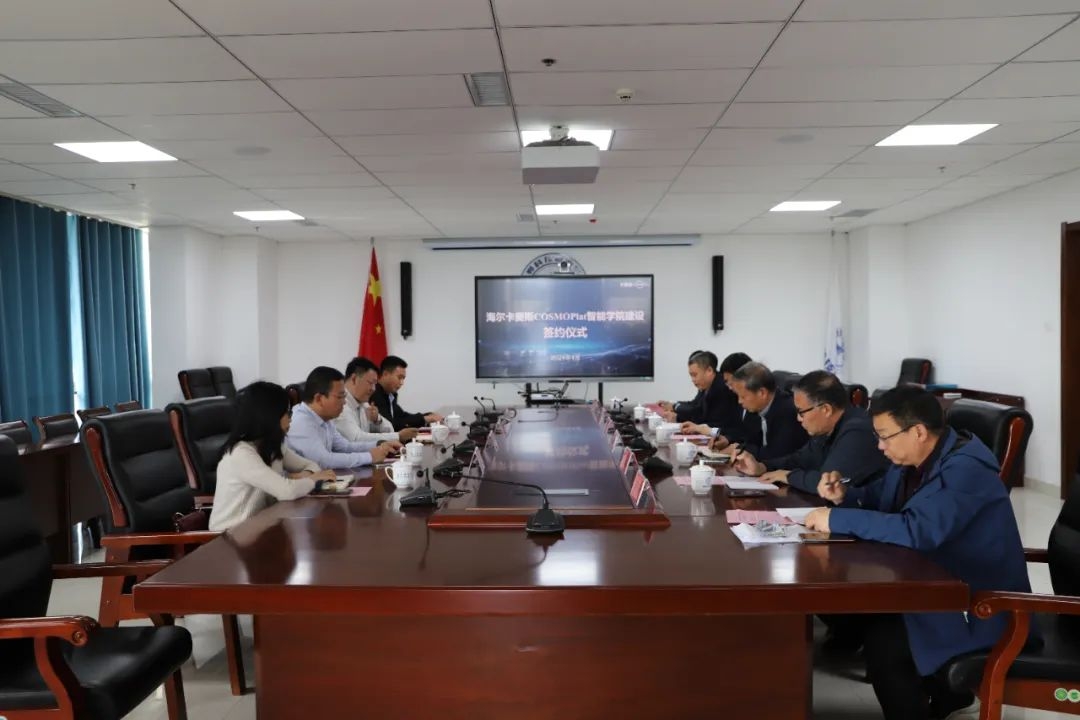 4月30日下午,邯鄲科技職業(yè)學院在職教城國際學術交流中心621會議室舉行海爾卡奧斯COSMOPlat智能學院建設簽約儀式。學院黨委委員、副院長任利民,學院黨委委員于保國,行文智教大區(qū)運營總監(jiān)于非、副總經(jīng)理張治安、河北區(qū)域經(jīng)理范志浩、盧瑞出席簽約儀式。