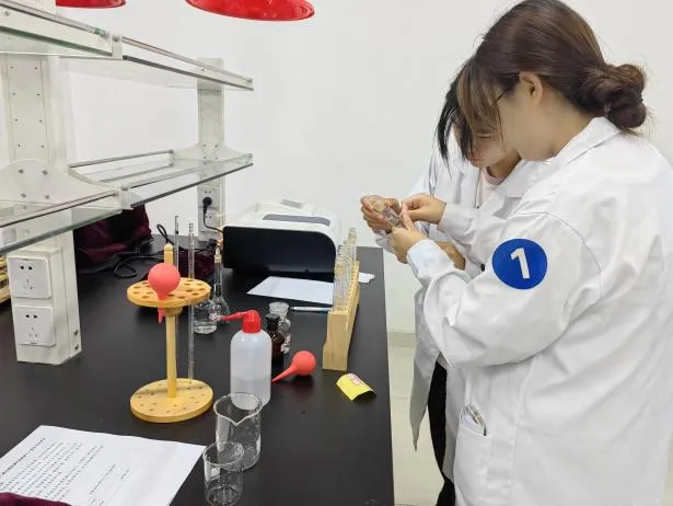 經(jīng)過(guò)多輪篩選,最終從2022級(jí)和2023級(jí)環(huán)境監(jiān)測(cè)技術(shù)專(zhuān)業(yè)學(xué)生中選出9組共18名選手進(jìn)入決賽。決賽分為理論考試和技能操作考試兩部分,分別在實(shí)訓(xùn)樓129和實(shí)訓(xùn)樓117進(jìn)行。選手需要在規(guī)定時(shí)間內(nèi)完成空氣中二氧化氮的分析以及結(jié)果報(bào)告等流程操作,全面檢驗(yàn)他們專(zhuān)業(yè)技能和實(shí)操能力。