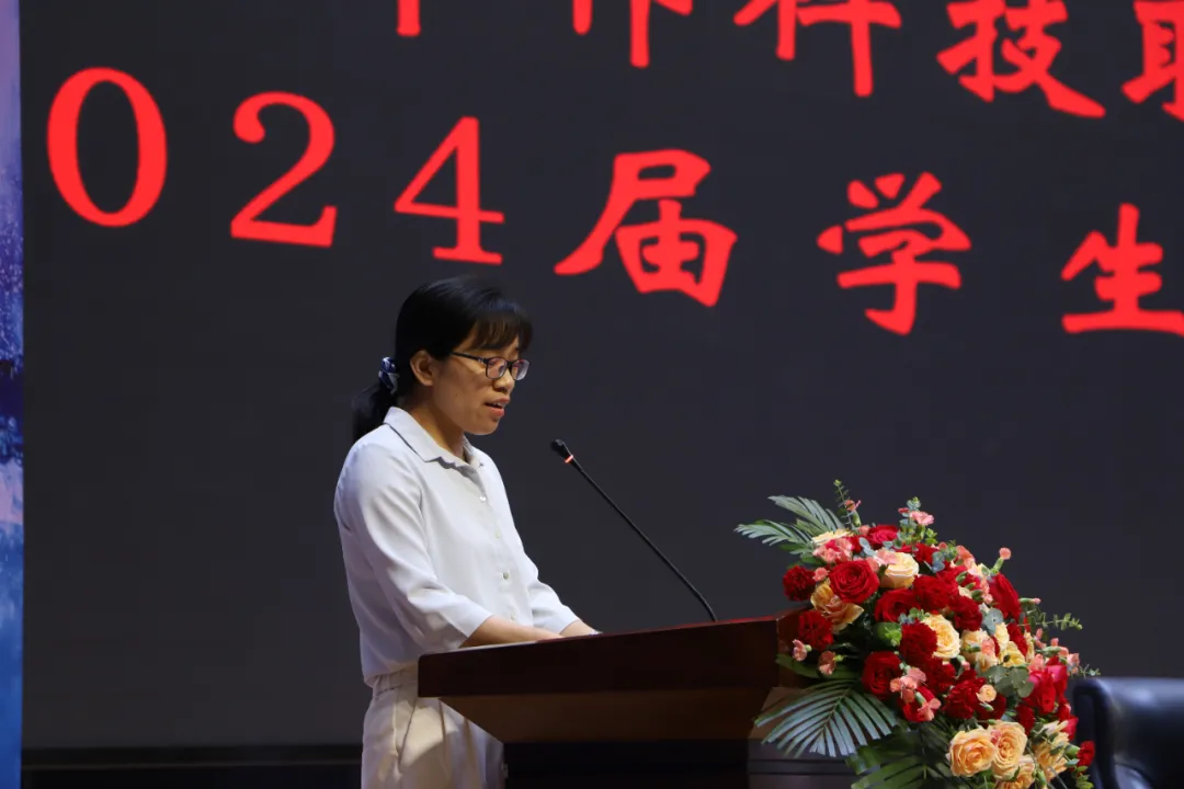 邯鄲科技職業(yè)學(xué)院黨委委員、紀(jì)委書記王敬獻宣讀學(xué)院獲得河北省2024屆優(yōu)秀畢業(yè)生名單。