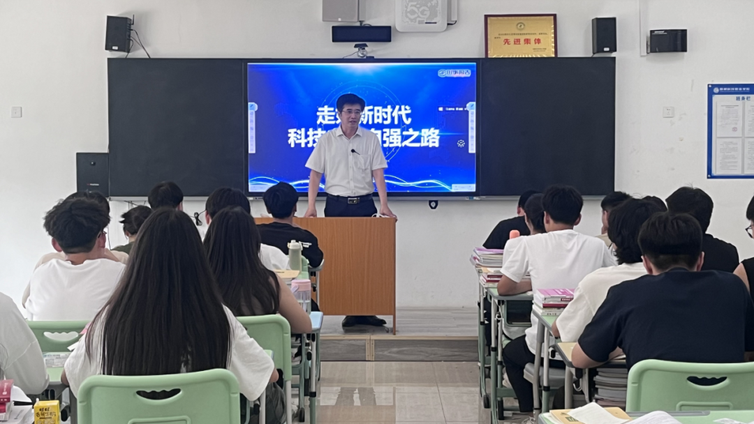 學(xué)院黨委副書(shū)記、院長(zhǎng)李鵬麗以“走好新時(shí)代科技自立自強(qiáng)之路”為題為學(xué)生們帶來(lái)了一次極具重要意義和戰(zhàn)略高度的思政課。他講到,在當(dāng)前國(guó)際形勢(shì)復(fù)雜多變、科技競(jìng)爭(zhēng)日趨激烈的背景下,科技自立自強(qiáng)對(duì)于國(guó)家發(fā)展和民族復(fù)興的重要性尤為突出,這是國(guó)家強(qiáng)盛之基、安全之要。在新一輪科技革命和產(chǎn)業(yè)變革重構(gòu)全球創(chuàng)新版圖、重塑全球經(jīng)濟(jì)結(jié)構(gòu)的時(shí)代背景下,科學(xué)技術(shù)從來(lái)沒(méi)有像今天這樣深刻影響著國(guó)家前途命運(yùn)和人民幸福安康,科技創(chuàng)新不僅是發(fā)展問(wèn)題,更是生存問(wèn)題。其次,李鵬麗帶領(lǐng)學(xué)生們回顧了中國(guó)在科技創(chuàng)新方面取得的長(zhǎng)足進(jìn)步,從探月探火、載人航天到“天眼”遠(yuǎn)望、深地探測(cè),再到超級(jí)計(jì)算機(jī)、人工智能等領(lǐng)域的重大突破,中國(guó)的科技實(shí)力和國(guó)際地位得到了顯著提升,而這些成果背后反映的是無(wú)數(shù)科技工作者的辛勤付出和不懈追求。李鵬麗還帶領(lǐng)學(xué)生分析了當(dāng)前中國(guó)面臨的科技機(jī)遇與挑戰(zhàn)。一方面,中國(guó)在科技創(chuàng)新方面已經(jīng)具備了堅(jiān)實(shí)的基礎(chǔ)和強(qiáng)大的實(shí)力;另一方面,也面臨著來(lái)自外部環(huán)境的壓力和挑戰(zhàn),因此必須加快科技自立自強(qiáng)步伐,把關(guān)鍵核心技術(shù)掌握在自己手中,不斷提升自身科研實(shí)力。結(jié)合我們職業(yè)院校的特色,李鵬麗最后向?qū)W生們提出幾點(diǎn)要求,強(qiáng)調(diào)青年學(xué)生要勇?lián)?zé)職責(zé)使命,認(rèn)真上好每一節(jié)課,不斷提升自己的專業(yè)知識(shí)和技能,同時(shí)他還鼓勵(lì)學(xué)生積極投身科技創(chuàng)新事業(yè),為實(shí)現(xiàn)中華民族偉大復(fù)興的中國(guó)夢(mèng)貢獻(xiàn)自己的一份力量。