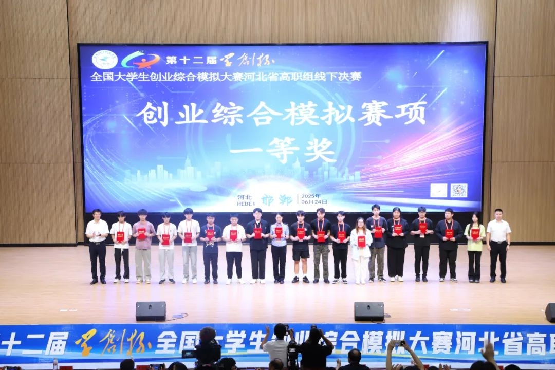 6月24日下午,第十二屆“學(xué)創(chuàng)杯”全國大學(xué)生創(chuàng)業(yè)綜合模擬大賽河北省高職組線下決賽在邯鄲科技職業(yè)學(xué)院閉幕! 出席第十二屆“學(xué)創(chuàng)杯”全國大學(xué)生創(chuàng)業(yè)綜合模擬大賽河北省高職組線下決賽閉幕式并為獲獎選手頒獎的有邯鄲冀南新區(qū)管委會主任、邯鄲科技職業(yè)學(xué)院黨委書記楊萬春,邯鄲科技職業(yè)學(xué)院黨委副書記、院長李鵬麗,邯鄲市教育局副局長季衛(wèi)東,邯鄲冀南新區(qū)黨工委副書記王富魁,邯鄲市教育局高職科科長佘在勇,邯鄲中關(guān)村信息谷科技服務(wù)有限公司總經(jīng)理李憲國,杭州貝騰科技有限公司京冀區(qū)域總監(jiān)張紅莉,邯鄲科技職業(yè)學(xué)院領(lǐng)導(dǎo)班子成員。